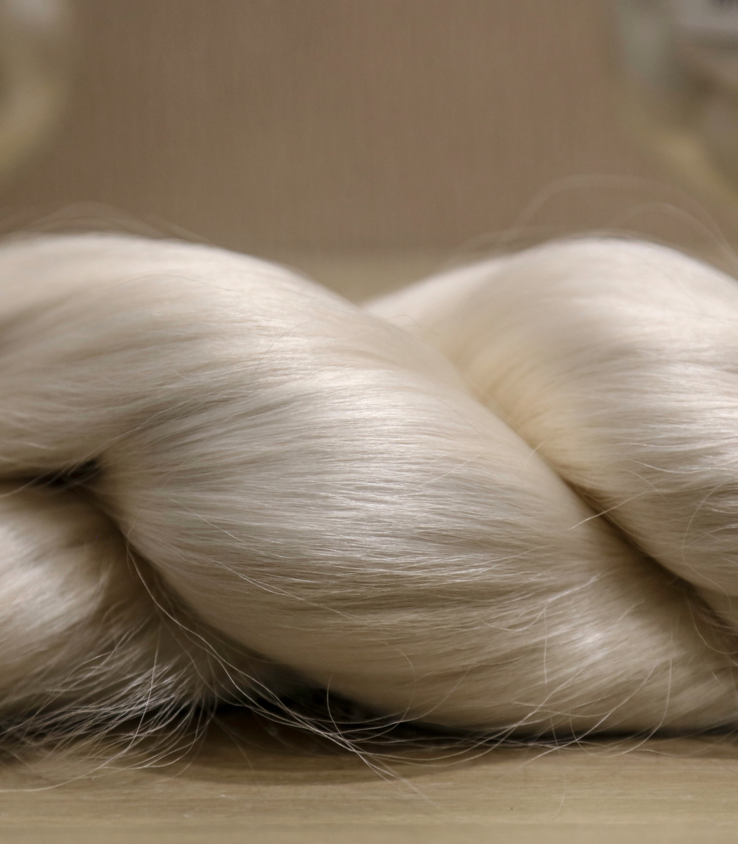 These silkworms spin cocoons from a continuous thread of silk, which is carefully unwound in a process called reeling to preserve the thread’s natural strength and shine.